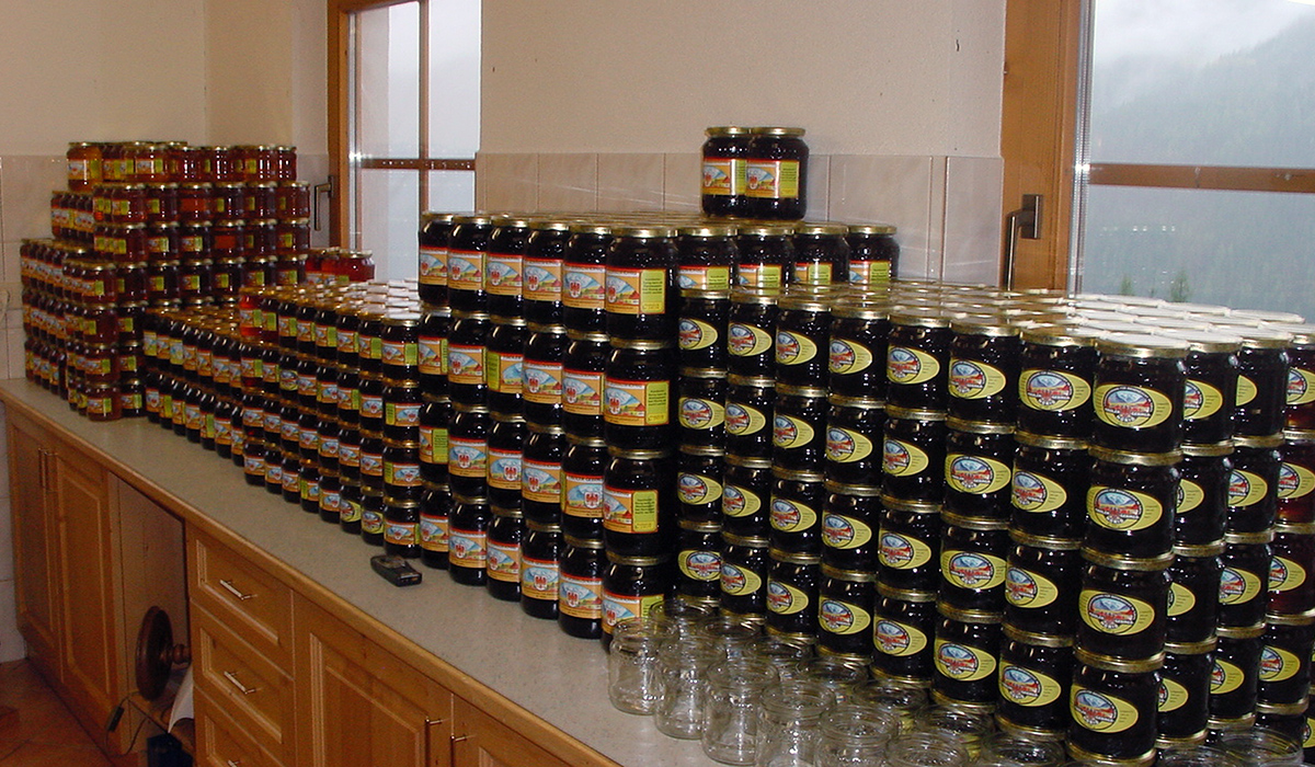 In addition to the small mountain farm and the rental business, we also run a beekeeping business with our own queen rearing. Together with our two daughters, Manuela and Theresa, we manage around 150 bee colonies. These produce an extremely tasty and high-quality honey from the nectar of mainly dandelion, blueberry, forest, raspberry, alpine rose and the diverse flowering mountain meadows. Our honey is therefore a mixture of different flowers and herbs.