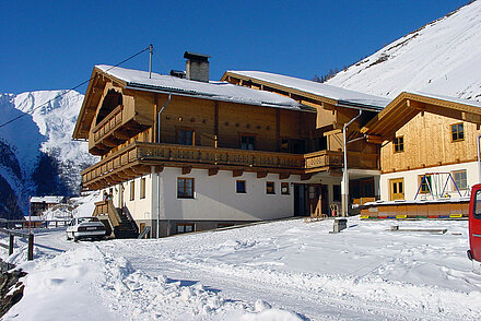 On the sunny slope of Innervillgraten, at 1650 meters above sea level, stands our apartment house with agriculture and beekeeping, and a breathtaking view of the Villgraten mountain scenery.